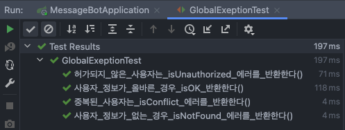- 컨트롤러에서 만든 예외 상황별로 테스트 코드를 작성해 보면 다음과 같이 구성할 수 있어요.